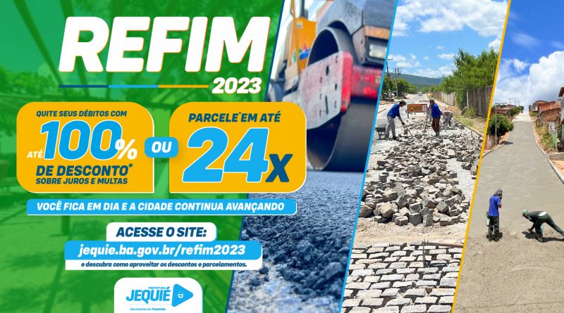 Com a finalidade de promover a regularização de débitos tributários e não tributários, entre eles, o Imposto Predial e Territorial Urbano (IPTU), o Imposto Sobre Serviços (ISS), e as taxas municipais, a Prefeitura de Jequié, através da Secretaria da Fazenda, iniciou o Programa de Regularização de Débitos Fiscais Municipais (REFIM 2023). Por meio dele, contribuintes pessoa física e também pessoa jurídica recebem incentivos para saldar uma série de débitos inscritos em Dívida Ativa.