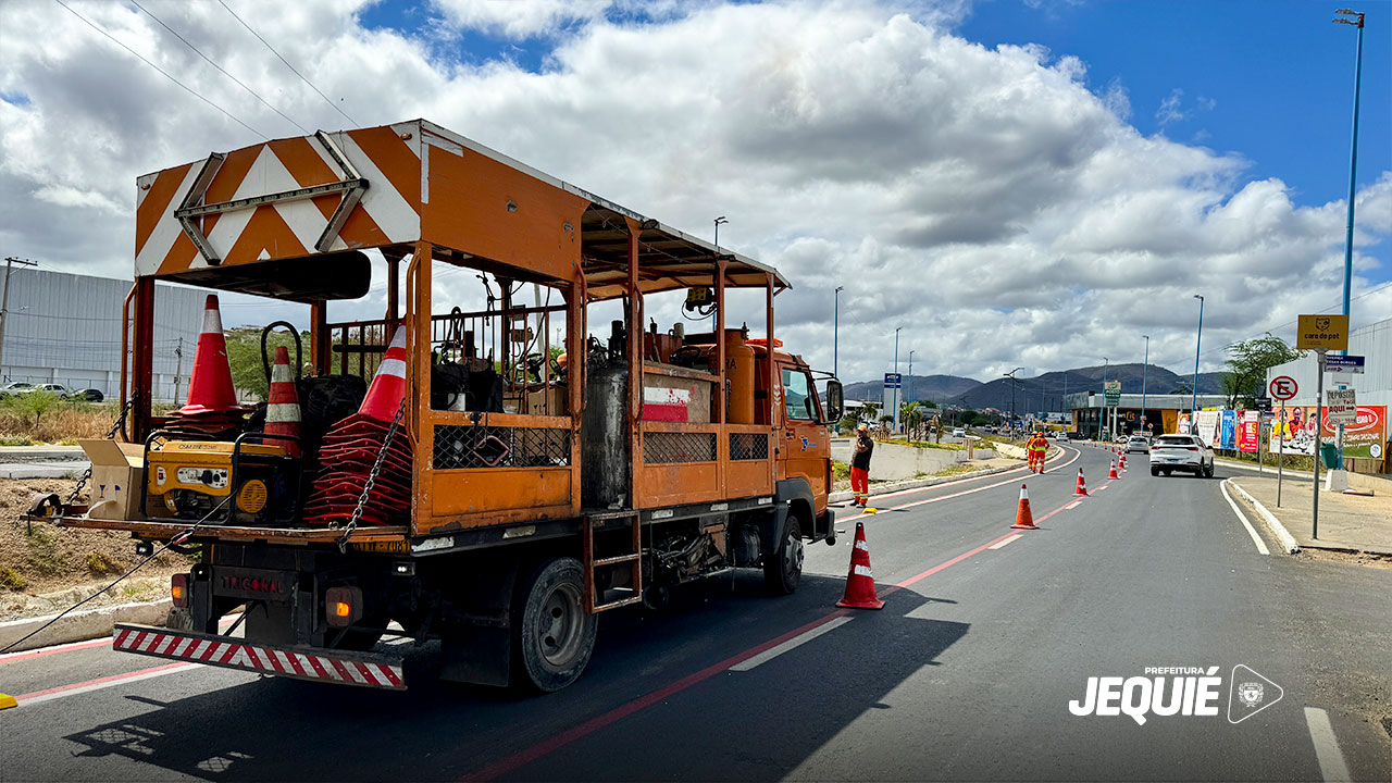 À medida que o programa Asfalto Novo Por Toda Cidade avança com a pavimentação asfáltica de ruas e avenidas do município, a Prefeitura de Jequié, através da Superintendência Municipal de Trânsito (SUMTRAN), amplia, também, a nova sinalização de trânsito, a fim de proporcionar mais segurança no fluxo de veículos e pedestres. E o trabalho vem promovendo a revitalização da sinalização de paradas obrigatórias, passagens elevadas, faixas de pedestres, faixas de estacionamento, eixos, bordos e canalizações.