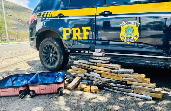 Durante a abordagem a um ônibus que fazia a linha Rio de Janeiro (RJ) x Guarabira (PB), os policiais iniciaram a vistoria no compartimento de bagagens. Uma mala rosa chamou a atenção da equipe, que decidiu inspecionar seu conteúdo. Dentro dela, foram encontrados 40 tabletes de substância com odor e características de maconha, totalizando aproximadamente 33 quilos.