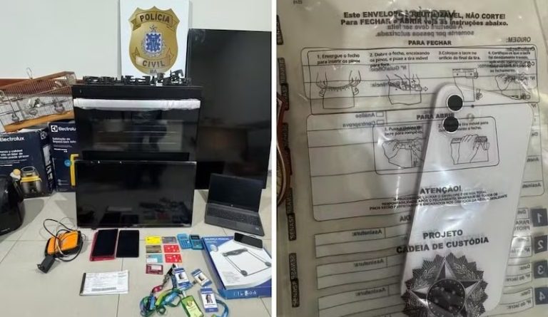 A polícia também cumpriu um mandado de busca e apreensão na casa da investigada e apreendeu diversos bens cuja origem não foi esclarecida. Entre os materiais recolhidos estão: um notebook, um aparelho celular da marca iPhone, um tablet, um fogão e televisores.