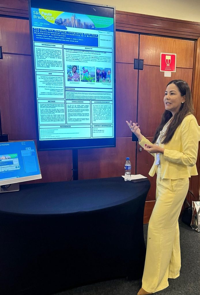 A Fundação José Silveira (FJS) apresentou o trabalho _“One Life, One Seedling: Integrating Birth Care and Environmental Sustainability in a Brazilian Healthcare Institution”_ durante a 41ª Conferência Internacional da ISQua (International Society for Quality in Health Care), realizada em São Paulo, entre os dias 12 e 15 de outubro.Representando a Instituição, a Gerente da Qualidade, Lise Hizumi, compartilhou na sessão _Lightning Talks / Hot Topics_ a experiência do programa “Uma Vida, Uma Muda”, desenvolvido na Santa Casa de Jequié. A iniciativa celebra cada nascimento com o plantio de uma árvore, unindo cuidado materno-infantil e sustentabilidade ambiental.A participação reforça o compromisso da FJS com a excelência assistencial, inovação e responsabilidade socioambiental, levando as boas práticas brasileiras ao cenário internacional._Referência global_ A ISQua é uma das principais organizações globais dedicadas à qualidade e segurança em saúde, reunindo especialistas e instituições de todo o mundo para promover sistemas de saúde mais seguros e sustentáveis.